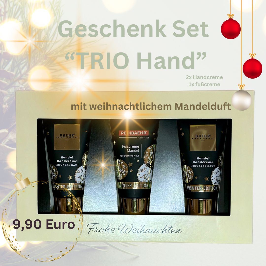 - Inhalt: 1x Geschenk Set "TRIO", 20x Winter Hautpflege Ampullen, 1x Bimsstein, 1x Luxus Badesalz "Powder Rose"