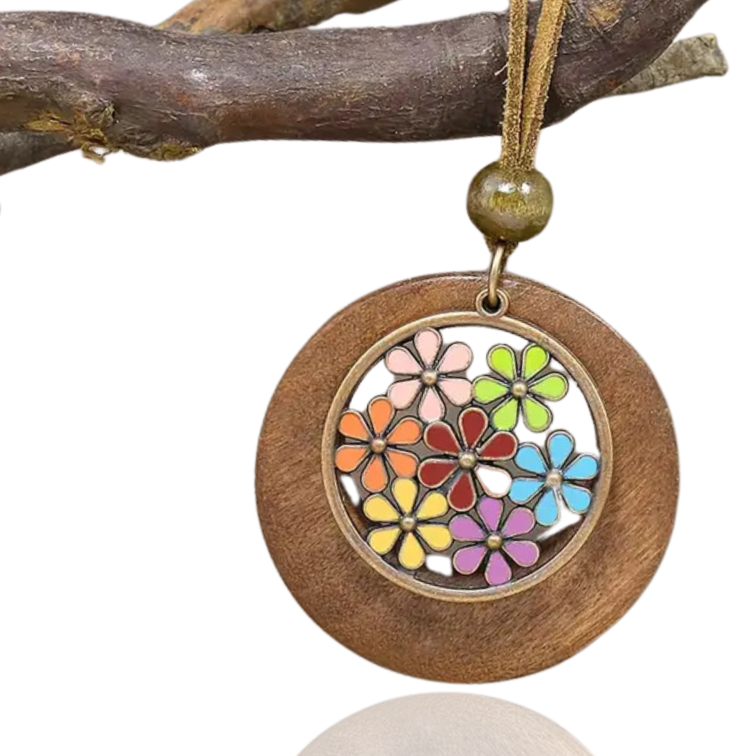 Lass dich verzaubern von unserer Vintage Halskette "BLOSSOM" aus unserer Maeowi Schmuckserie "BLOSSOM"! Die filigranen Blüten und das natürliche Holz verleihen deinem Outfit eine romantische und authentische Note. Wunderschön für Boho-Looks oder als besonderes Accessoire für Naturfreunde!