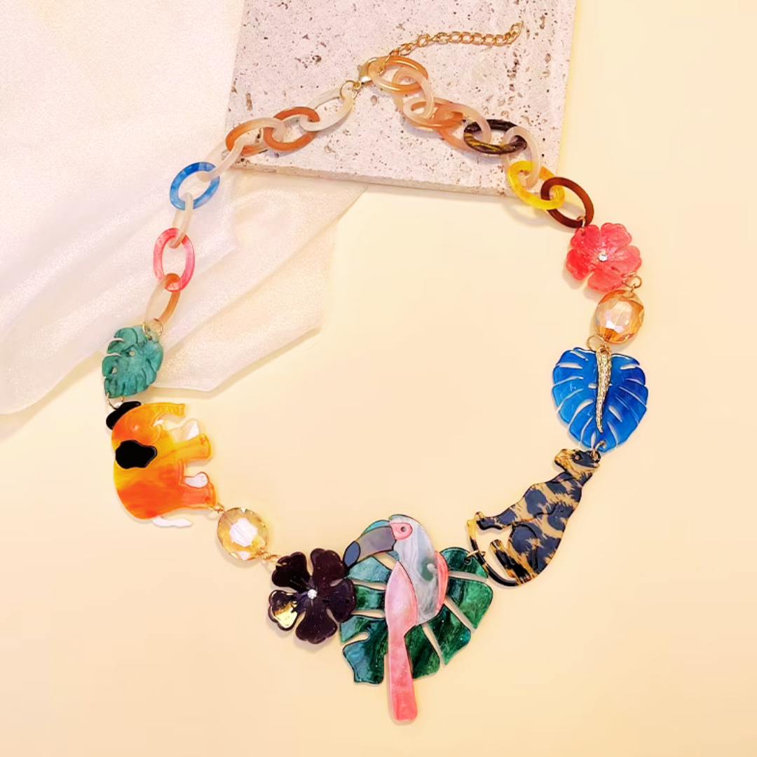 Entdecke deine wilde Seite an dir mit unserer bunten Halskette "FAUN"! Verleihe deinem Outfit eine besondere Note mit den auffallenden Tier- und Pflanzensymbolen aus Acryl gefertigt. Zeig dich wild und bring Farbe in den Alltag! Mit FAUN ist alles möglich!