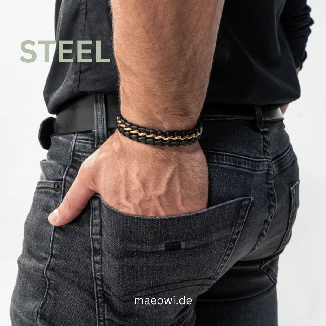 Erlebe stilvolle Männlichkeit mit dem Lederarmband „STEEL“ aus Rindsleder und Edelstahl. Der rost- und nickelfreie Magnetverschluss und das extra Glied zum Verlängern machen dieses Armband besonders praktisch. Versand aus Deutschland.
