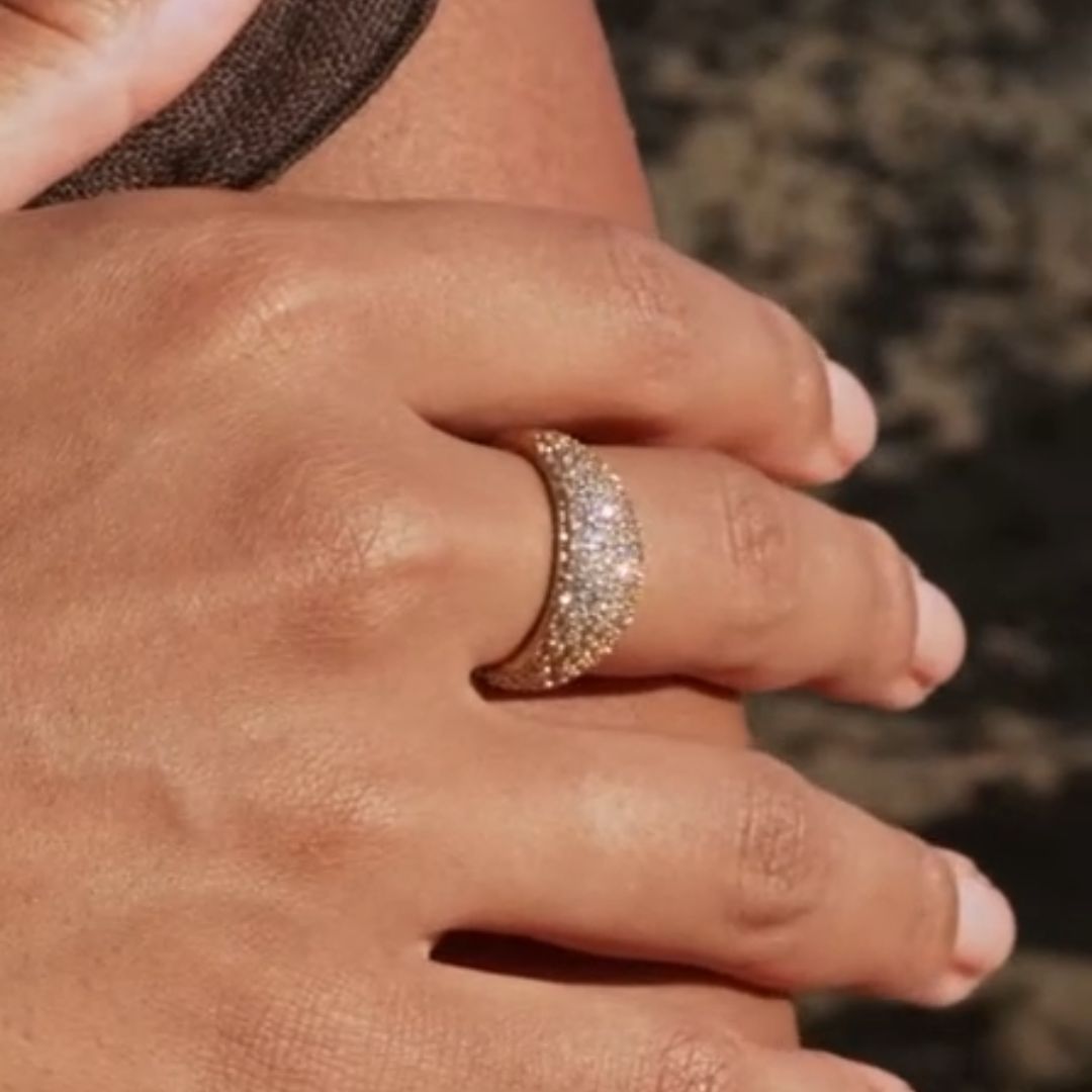 Unser Cassiopée-Kuppelring strahlt wie ein sternenklarer Mitternachtshimmel. Das breite Design wirkt edel und auffällig, während die pavégefassten weißen Steine einen himmlischen und glamourösen Touch verleihen. Ein wahres Statement-Stück für alle, die sich trauen, herauszustechen. Versand aus Deutschland.