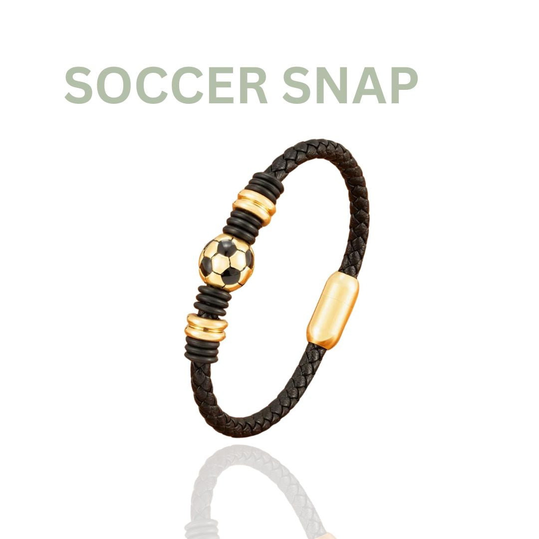 Dieses Armband ist der perfekte Begleiter für alle Fußballfans! Das hochwertige Lederarmband ist mit einer stilvollen Fußballverzierung versehen und verleiht jedem Outfit einen sportlichen Touch. Zeige deine Leidenschaft für den Fußball mit dem Soccer Snap Armband! Versand aus Deutschland. Nur noch begrenzt verfügbar!